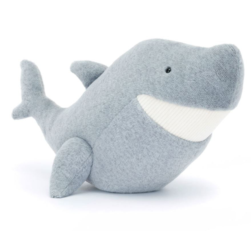 Silvie Shark is all smiles! In soft, short-pile grey fur, Silvie has the biggest, brightest set of fine cord teeth! With small fins and an upturned tail, Silvie sits tall and proud, spreading seaside joy!