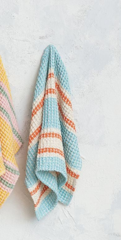 Cotton Waffle Weave Tea Towel with Stripe