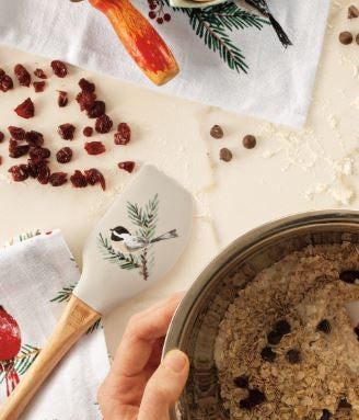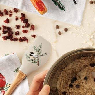 The Birds & Boughs spatula is made with a solid wood handle and features a darling design that makes whipping up a sweet treat that much more fun. The silicone head is heat-resistant and can be removed for easy cleaning. Perched on a bough, a cheerful chickadee signals the arrival of winter’s natural wonders.