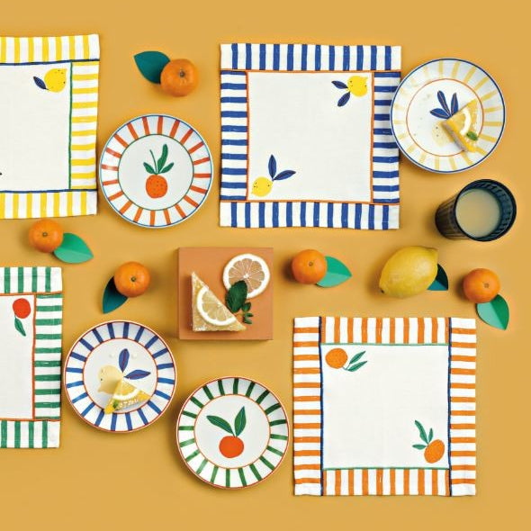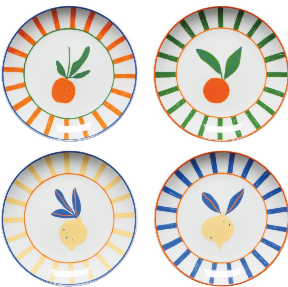 Whet the appetite for fun and squeeze joy out of ordinary moments with these eye-pleasing Citrus Burst appetizer plates. Zesty lemons and oranges shine bright on boldy striped backgrounds in this refreshingly colorful design from the Citrus Burst collection.