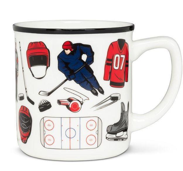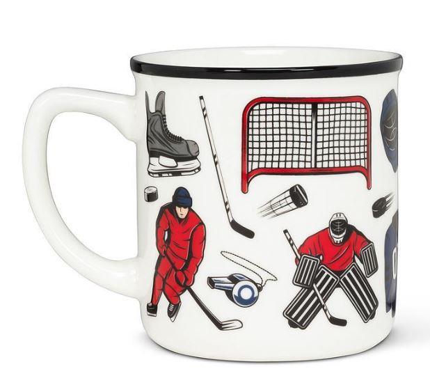 Celebrate Canada's favourite game every time you enjoy your morning coffee or tea with this cool Hockey Icons Mug. This white stoneware mug features dynamic, streamlined graphics of hockey icons ranging from pucks, skates and whistles to rinks, sticks, players and more.