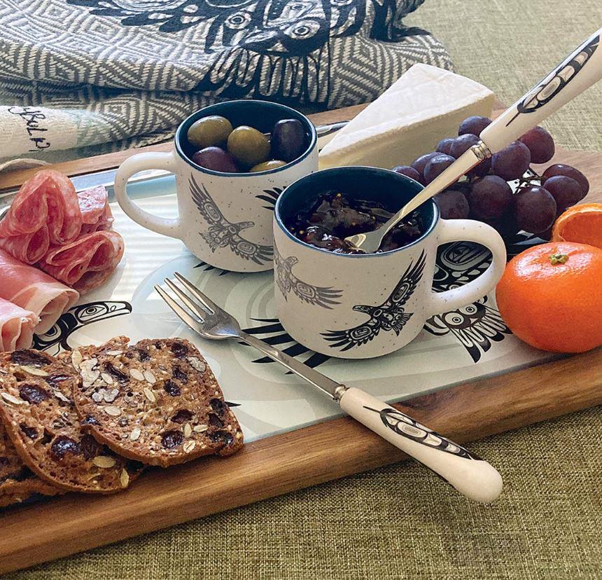 Inspire your mornings and sip away the late-day doldrums with our gorgeous 3 oz Ceramic Espresso Mugs featuring authentic Indigenous artwork. The speckled matte exterior and coloured glossy interior offer visual intrigue and a truly unique lounging experience.