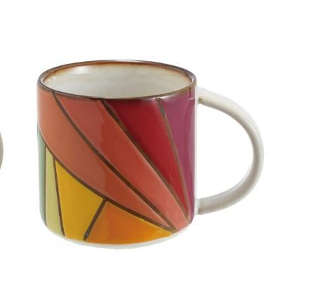 Enjoy your favorite beverage in this vibrant 14 oz. stoneware mug, featuring a unique wax relief design and a colorful reactive glaze. Warm pinks, yellows, and purples. Each mug offers an artistic, handcrafted look that adds charm to any mug collection.