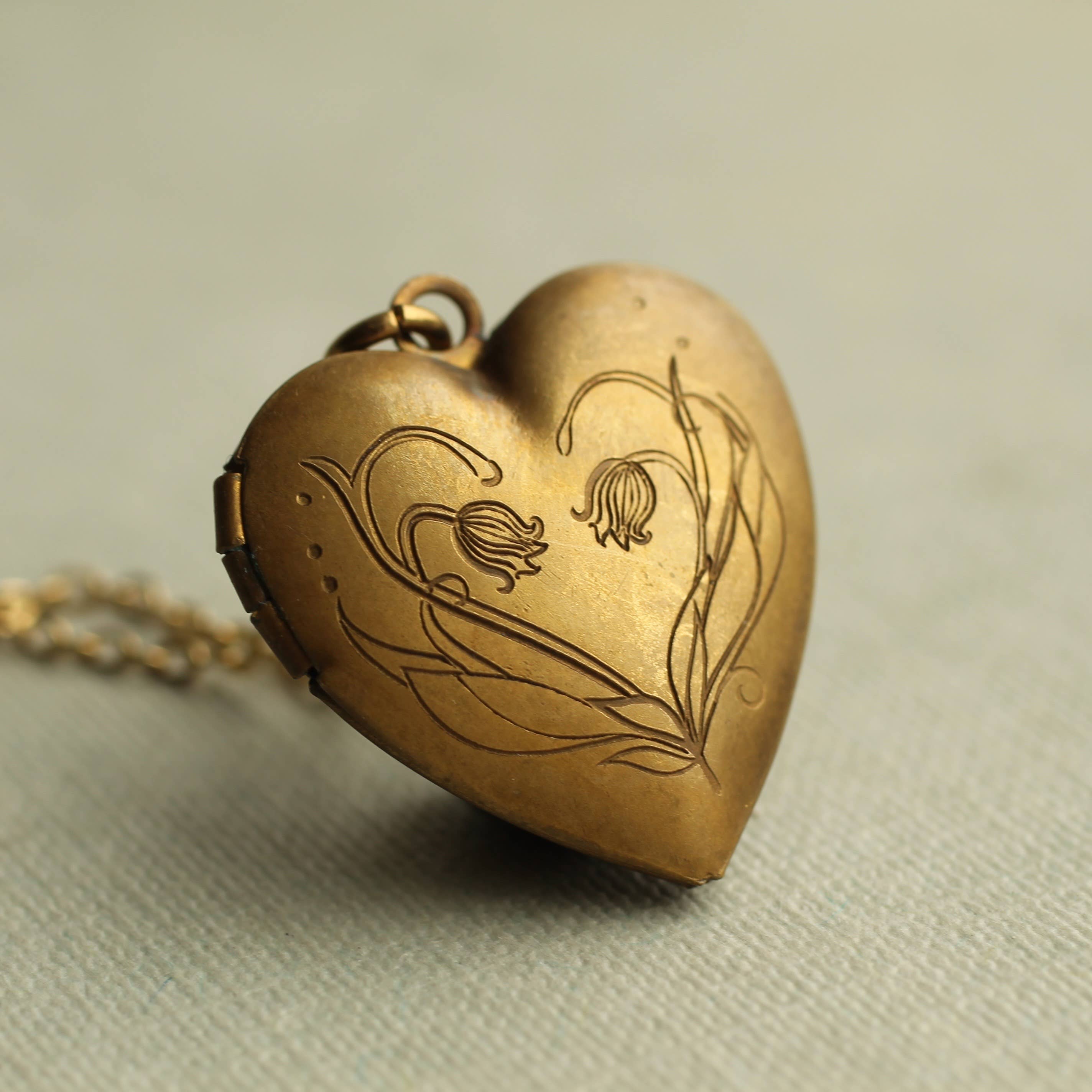 This beautiful vintage locket is a simple heart shape, perfect for either an adult or child. The locket measures only 25mm (one inch) across and is made from solid brass.