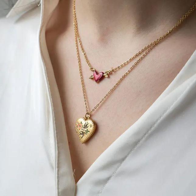 Keep cherished photographs of loved ones and treasured mementoes close to your heart with our exquisite heart-shaped Swallow Locket. This enchanting piece, beautifully gold-plated, is meticulously hand-carved and hand-painted, ensuring that each locket boasts its own distinctive charm and personality. Each locket tells a story and sparks joy, making them perfect gifts or additions to personal collections.