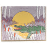 Follow dad to the next adventure in the swamp! This father's day card features a warm scene of a croc dad and his hatchlings waddling off into the sunset. Blank inside.