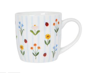 Soft, slow, picnic-perfect summer days inspire this bright and airy Hand Picked Porcelain mug. This gorgeous mug is a surefire conversation starter, because a good chat doesn't start over a salad. Hand-painted daisies and ladybugs flower and flit across a striped light blue and comforting cream surface in this design from the Hand Picked collection.