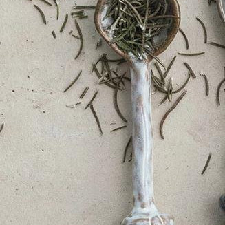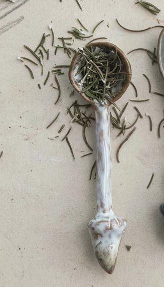 Stoneware spoon with Mushroom handle Reactive GlazeDue to the nature of how this product is made, each one may vary