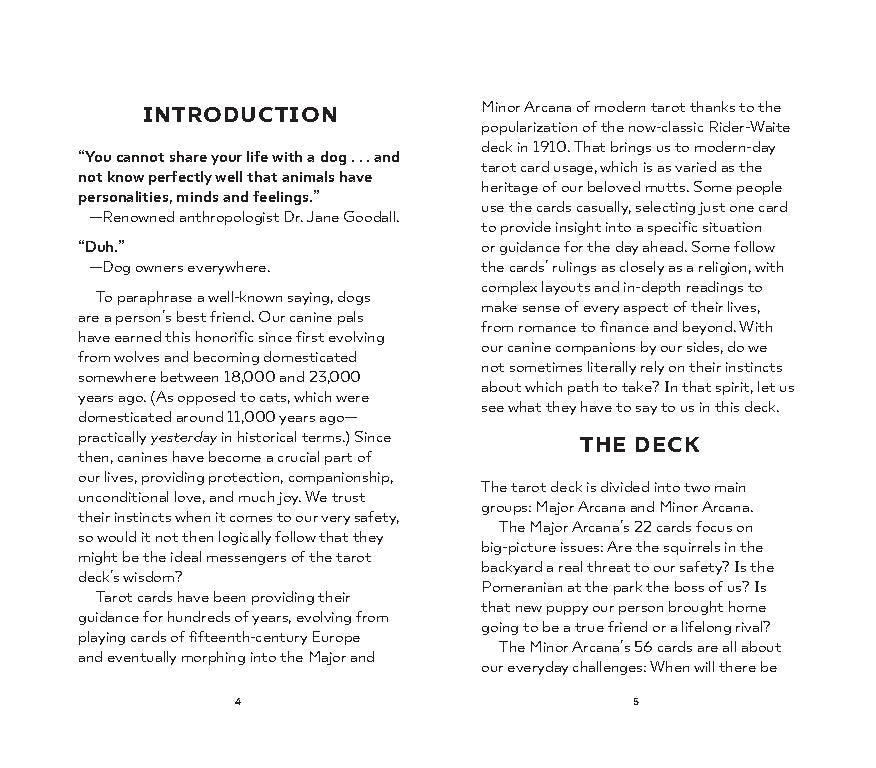 Find the answers you seek with this paws itively divine tarot deck inspired by our wise, loving, and loyal companion the dog! This entertaining modern twist to the classic tarot combines authenticity with canine sensibility in a complete deck for experienced readers and beginners alike. With their uncanny ability to sense exactly how you feel and what you need, these pups make the perfect guides on your journey of self-discovery. Illustrated by the creator of the beloved Cat Tarot, Megan Lynn Kott, each of the 78 tarot cards features an adorable dog embodying a specific element of the Major or Minor Arcana. Complete with a guidebook and directions on how to interpret each card and conduct different readings, this tarot card set will delight both dog lovers and spiritual practitioners.A DOG-GONE DELIGHTFUL ANIMAL TAROT
