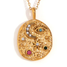 Confetti style Gold Coin Pendant with 9 set stones Stainless Steel 14K gold hammered and carved Coin Pendant.