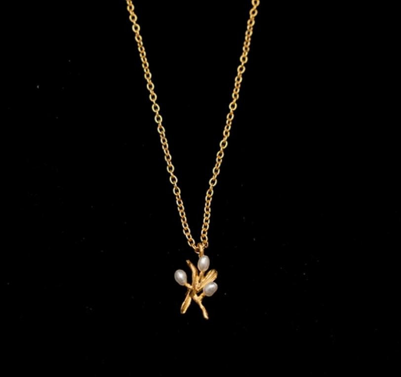 Inspired by the delicate beauty of nature, the Night Willow Dainty Necklace by Michael Michaud is a graceful and elegant addition to any jewelry collection. Cast in sterling silver with a luxurious 24k gold finish, this necklace exudes a timeless, sophisticated charm. The design is beautifully accented with freshwater pearls, adding a touch of iridescent shimmer that contrasts perfectly with the warm golden tones.