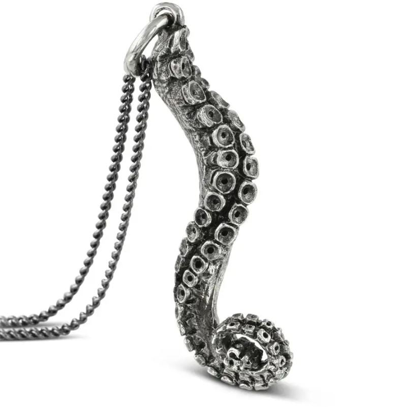 Reaching up from the inky abyss, our elaborately hand-carved Tentacle necklace is a tribute to the only animal with four pairs of arms. And three hearts. And a lot of suckers.