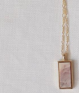 Hand cut stones in a rectangle setting. Rectangle is 3/4” long 3/8” wide on an 18" figaro chain Sterling Silver with a heavy 14kt gold plating and gold-fill chain.