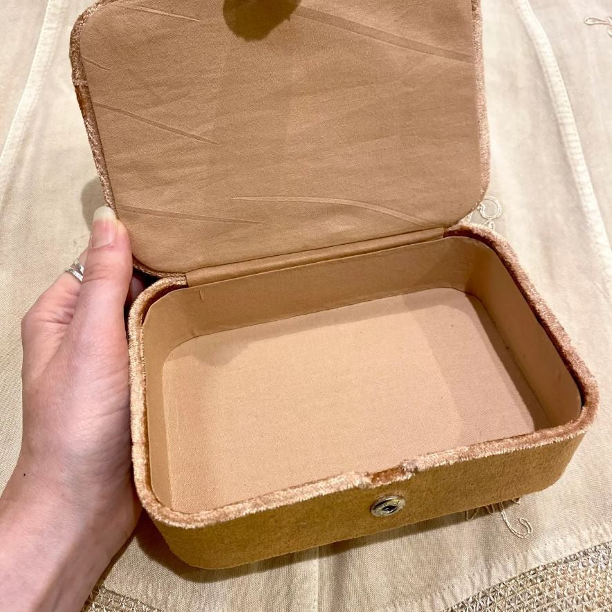 Wrapped in velvet and adorned with a lovely floral print, this jewellery or trinket box is more than a storage solution - It's a ritual in beauty. Every detail, from the delicate embroidery to the shimmering beadwork, speaks to craftsmanship and care, transforming this box into a piece of art for your altar, vanity, or bedside.