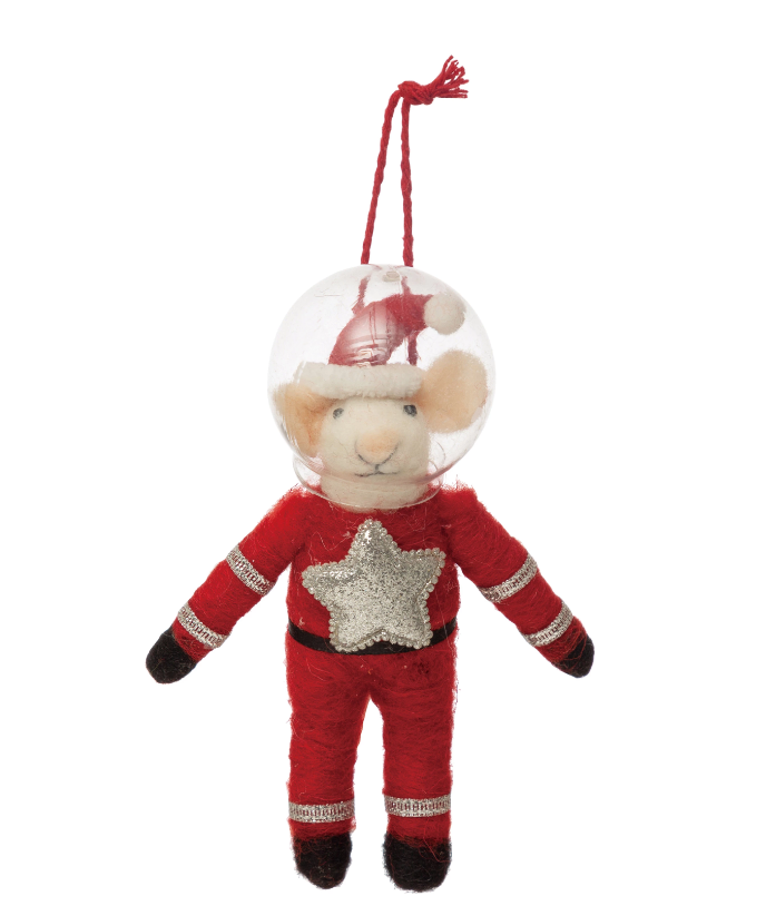 Dream big and look to the stars, just like the Astronaut Mouse. The ornament is created using wool felt and features a mouse in a red astronaut outfit.