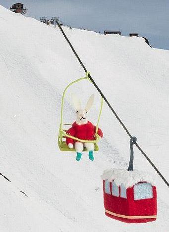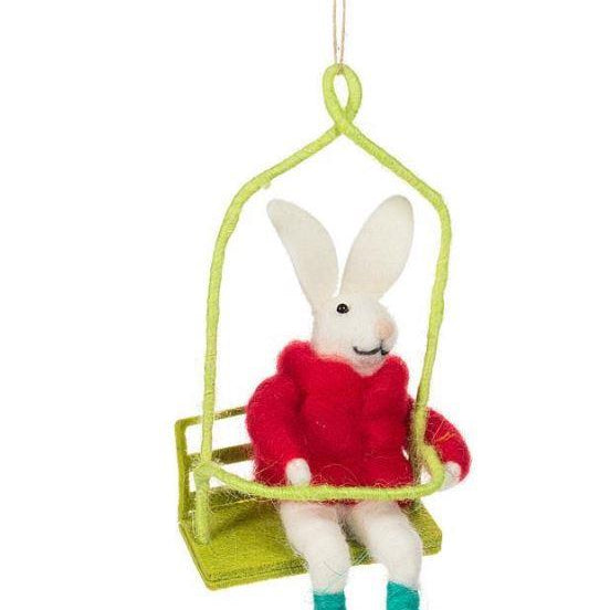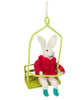 Any fun-loving ski bunny will want to add this playful Winter Bunny on Chairlift Ornament to their holiday decor! Crafted out of wool felt and styro, this plush bunny dressed for the slopes sits on a yellow chairlift patiently waiting to reach the top of the hill – a fun and festive complement to any Christmas tree.