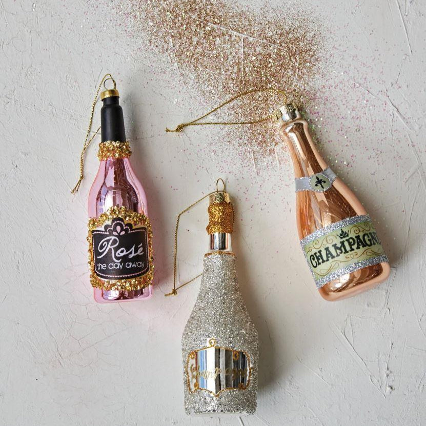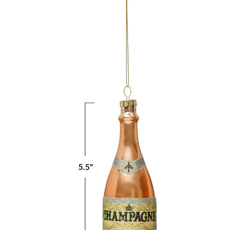 5-1/2"H Glass Champagne Bottle Ornament w/ Glitter, Multi Color