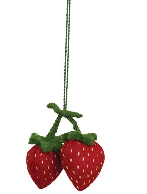 This handcrafted ornament captures the essence of a merry season with its lifelike wool strawberries, dyed in rich reds and accented with lush green. Each berry is meticulously shaped and assembled by skilled artisans, ensuring that every piece is unique. The use of natural cotton and resilient polyester materials not only gives the ornament its soft, inviting feel but also promises longevity, so cherish this delightful decoration for many holidays to come. It measures 3.25 inches in length and 3.0 inches in height, perfectly sized to become a standout piece in the holiday decoration collection. Whether it's hung from a tree branch or placed as a centerpiece, this ornament is sure to add a dash of handmade charm to the festive celebrations. A delightful touch of garden charm, this handmade ornament features wool strawberries in vibrant red and green. An adorable addition to any festive decor, it brings a sweet and homey feel to the holiday celebrations. Ideal for adorning the Christmas tree or as a charming accent in a holiday wreath, this ornament spreads cheer wherever it hangs.