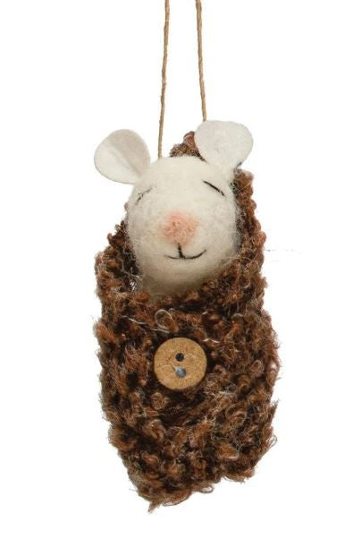 2.3/4"H Wool Felt Baby Mouse in Swaddle Ornament w/ Button