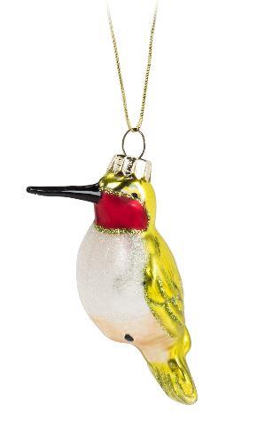 Let this hummingbird fly to your tree this year! With bright green and red colours, this glass hummingbird is enhanced with sparkling glitter making it a striking addition!