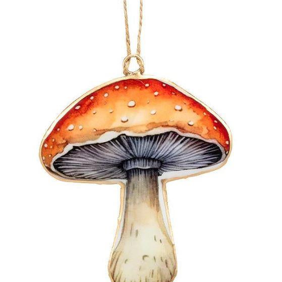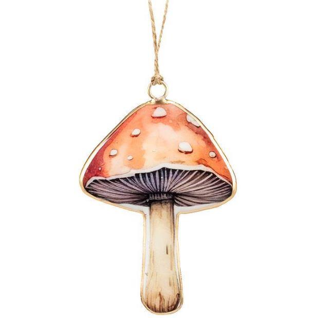 This festive Mushroom Ornament makes a wonderfully retro addition to any Christmas tree. Crafted out of metal, this double-sided ornament features an iconic mushroom image. Made in India.