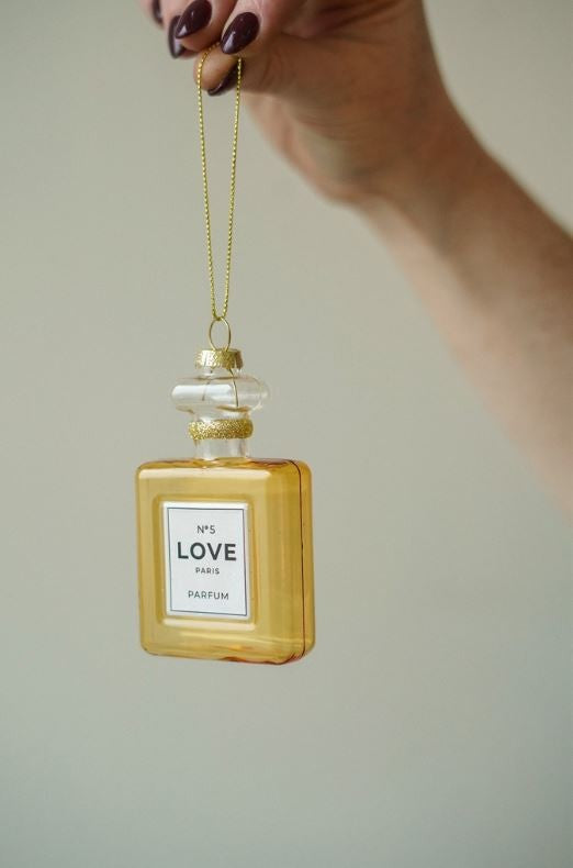 Made in the European hand-blown glass tradition, the Perfume Holiday Ornament captures the charm of classic craftsmanship with a playful twist. Inspired by the timeless elegance of a classic perfume bottle, this ornament brings the spirit of celebration to your festive decor, its sparkling design adds a fun and lighthearted touch to your holiday decor. This ornament will take pride of place on your tree year after year, bringing a festive spirit to your celebrations.
