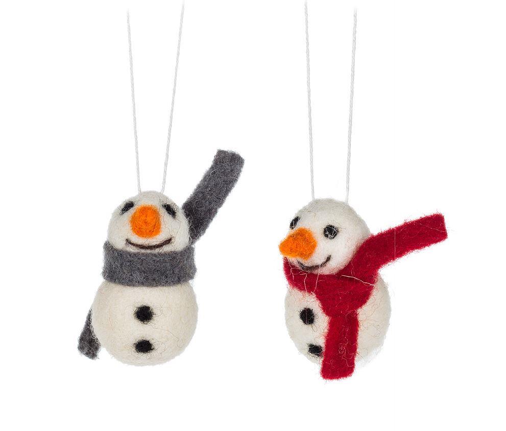 These adorable Small Snowmen Ornaments are a fun and festive addition to any Christmas tree. These polyester and wool-crafted snowmen are dressed for the weather with colourful scarves to keep them warm all winter long!