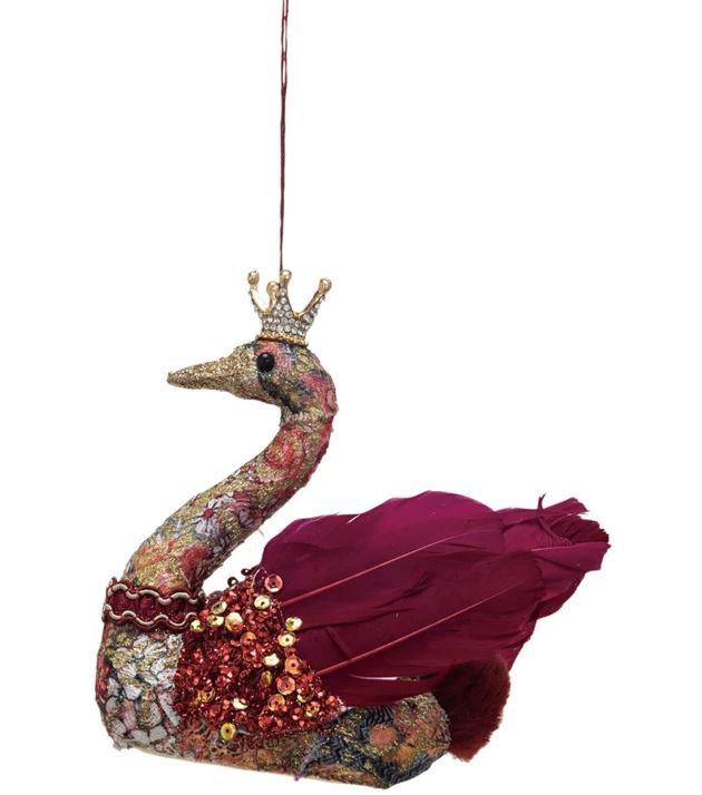 This enchanting swan clip-on ornament is a perfect addition to holiday decor. Featuring a majestic swan design with a sparkling crown, shimmering glitter, and colorful sequins, this ornament adds a touch of fairytale charm to the Christmas tree, wreath, or garland. It measures 4.25 inches in length, 2.75 inches in width, and 5 inches in height. Made of lightweight and durable polyfoam and polyester, this ornament is sure to bring a touch of magic to the holiday season. A majestic swan ornament adorned with a sparkling crown, shimmering glitter, and colorful sequins. Adds a touch of fairytale charm to the holiday décor. Ideal for clipping onto a Christmas tree, wreath, or garland.