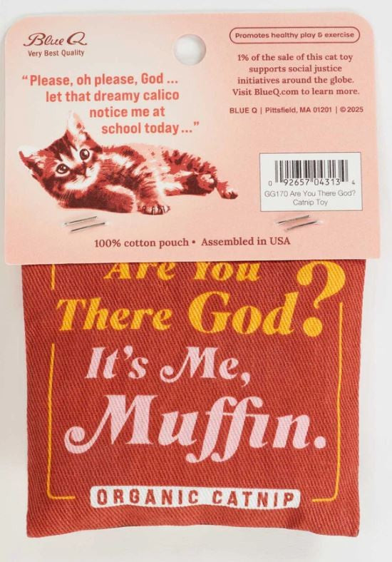 100% cotton pouch, screen-printed and stuffed with premium organic catnip grown in the USA.