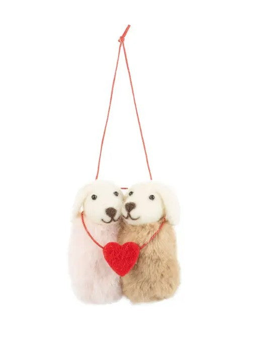 This adorable felt dog couple ornament features two sweet pups sharing a red heart, making it a perfect symbol of love and loyalty. A heartwarming addition to your holiday tree, it’s a lovely gift for dog lovers, couples, or anyone who believes in puppy love!