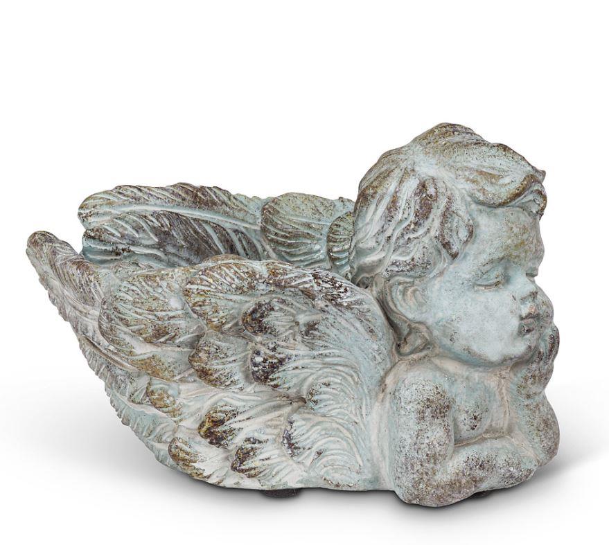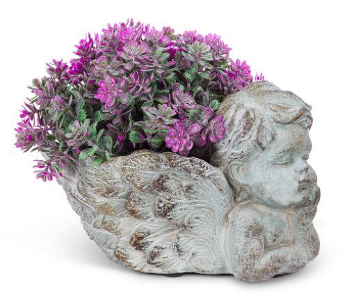 This Resting Cherub Planter makes a heavenly home for your favourite succulents, cacti or small blooms. Crafted out of cement and painted grey to resemble the classic, weathered Romanesque sculpture of yesteryear, this richly detailed and textured planter brings an angelic accent to any plant.