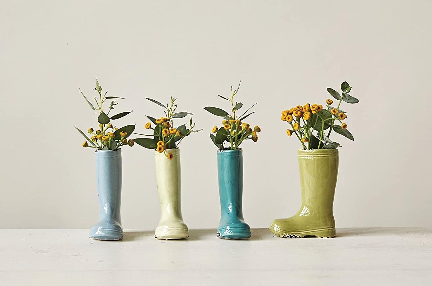 Have fun arranging these boots in a row, with all heels touching or side by side. Fill each with a small flower and scatter mini decorative umbrellas around them for a beautiful centerpiece. They can also be used on a desk to hold pens, pencils and scissors.