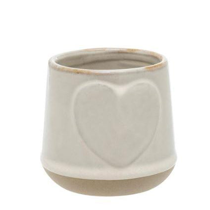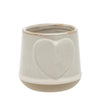 In classic white, our stoneware Love Pots, feature a relief heart and contrasting unglazed base. Beautiful potted with succulents, as a desk organizer, or as a loving keep sake holder, they add a playful touch to any room. No Drainage Hole.