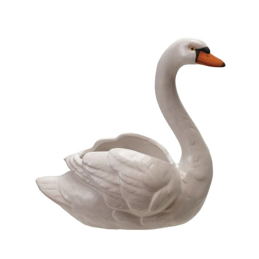 Graceful and eye-catching, this Swan Shaped Stoneware Planter brings elegance with a playful twist to your home or garden décor. Featuring a glossy white body with orange and black detailing, this sculptural planter is perfect for small plants, succulents, or as a charming standalone piece.