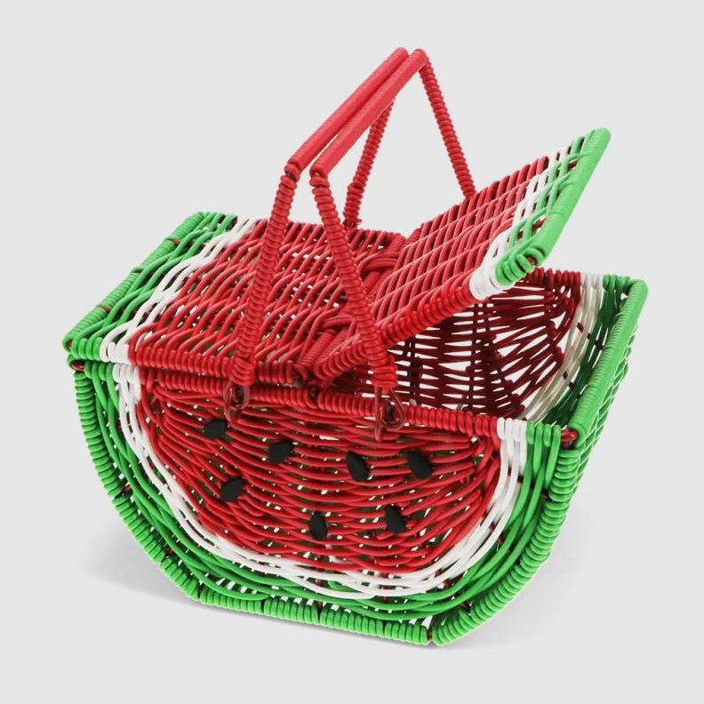 Bring a little extra fun to summer with this adorable picnic basket, featuring a fruity watermelon design. Crafted from food-safe plastic and woven around a sturdy metal frame, it’s a charming way to carry your favourite treats for picnics in the park, beach outings or dap trips.