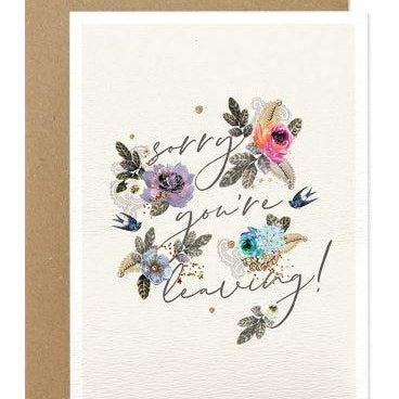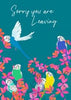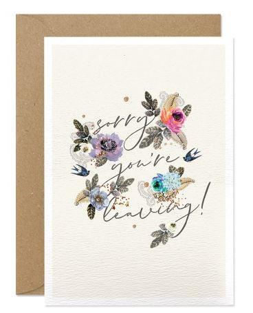 The front of this card reads "Sorry You are Leaving" the inside of the card is blank for your message.