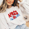 Apres Ski Puff Sweatshirt, Winter Crewneck Sweater Trendy TEXT PUFF COLOR IS RED The standout design element is the bold red "APRÈS SKI" text in puff print, giving it a raised, tactile texture that adds a playful, retro-inspired dimension. Beneath the text is a flat graphic illustration in blue, depicting stylized mountains and pine trees—giving off alpine vacation vibes. SIZE: Please refer to the size chart located in one of the listing photos. Note, these are unisex sweatshirts so they have a looser, comfy- fit and runs true to size.