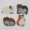 Colors: Cream, grey, brown, and orange (each coaster features a different colored cat)