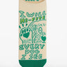 It's not a threat, it's a promise. Made with shock-absorbing cushion, soft heel tab and compression band. SM fits women's shoe size 5-9men's shoe size 4-8. LXL fits women's shoe size 9-13men's shoe size 8-12. 39% polyester; 39% cotton; 19% nylon, 3% spandex.