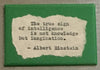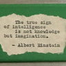 This 2"x3" fridge magnet includes a type-written font motivational quote: "The true sign of intelligence is not knowledge but imagination." - Albert Einstein