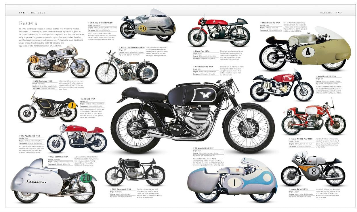Tracing the history and allure of the motorcycle, this book illustrates the diverse spectrum of bikes from the earliest prototypes to battery-powered machines of the modern age. It showcases motorcycles in all their forms, from humble scooters that offer mobility to the masses, the scramblers and racers that delight enthusiasts, to the iconic choppers and cruisers that can cross continents.