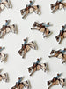 Saddle up for a wild ride with our "Cowboy Riding Bucking Bronco" Embroidered Iron-On Patch! This intricately designed patch captures the thrilling moment of a cowboy conquering a bucking bronco, perfect for Western enthusiasts and those who love a bit of rodeo excitement.