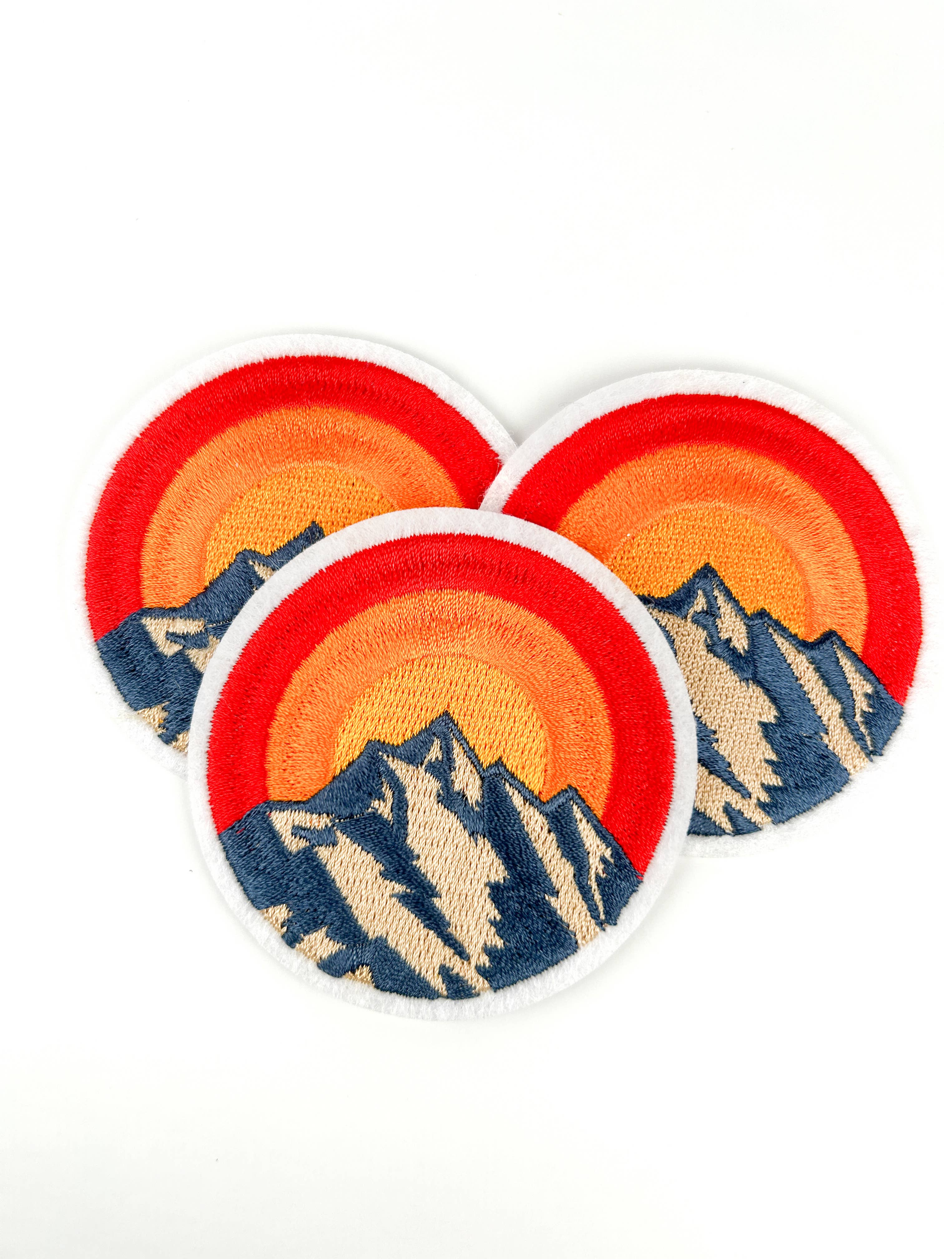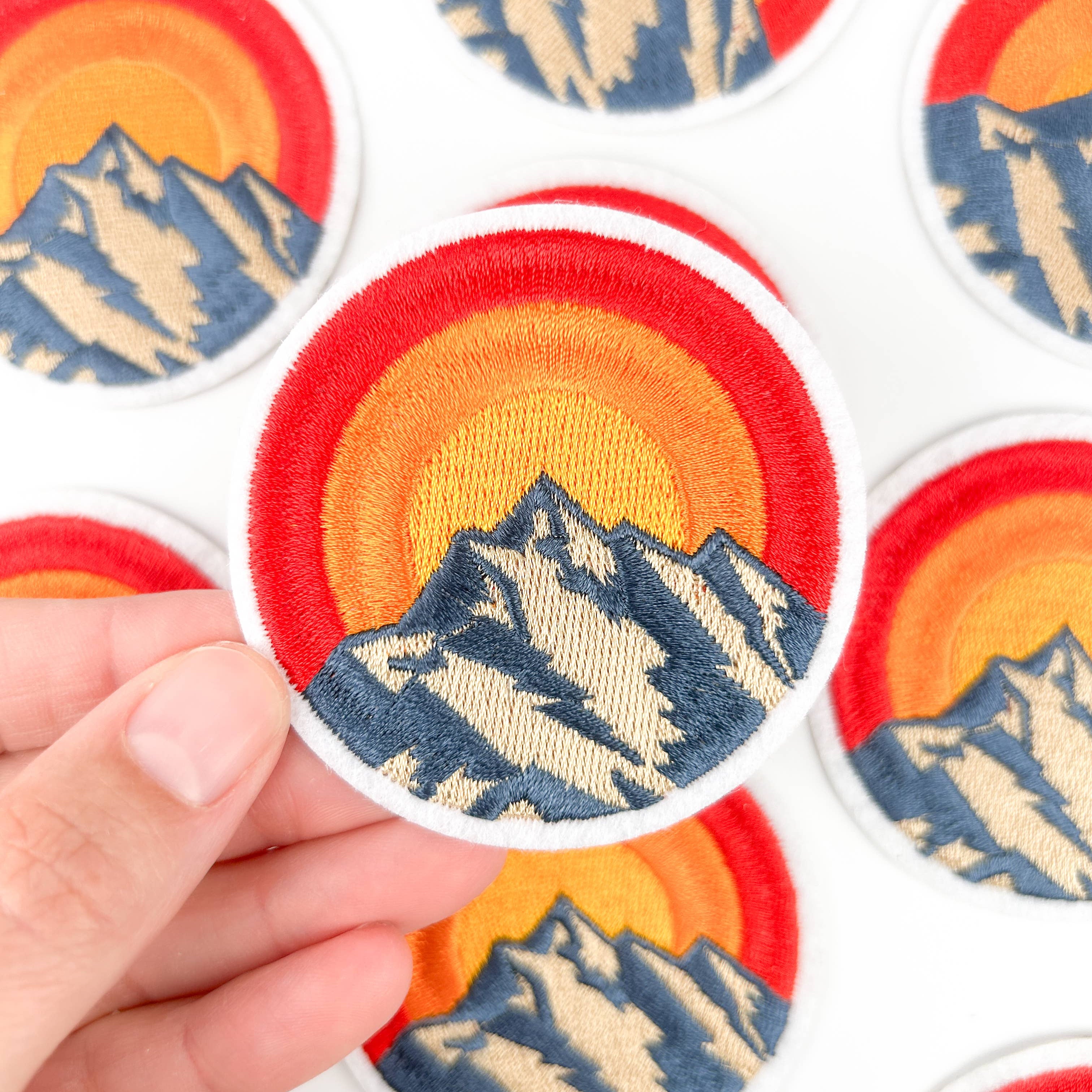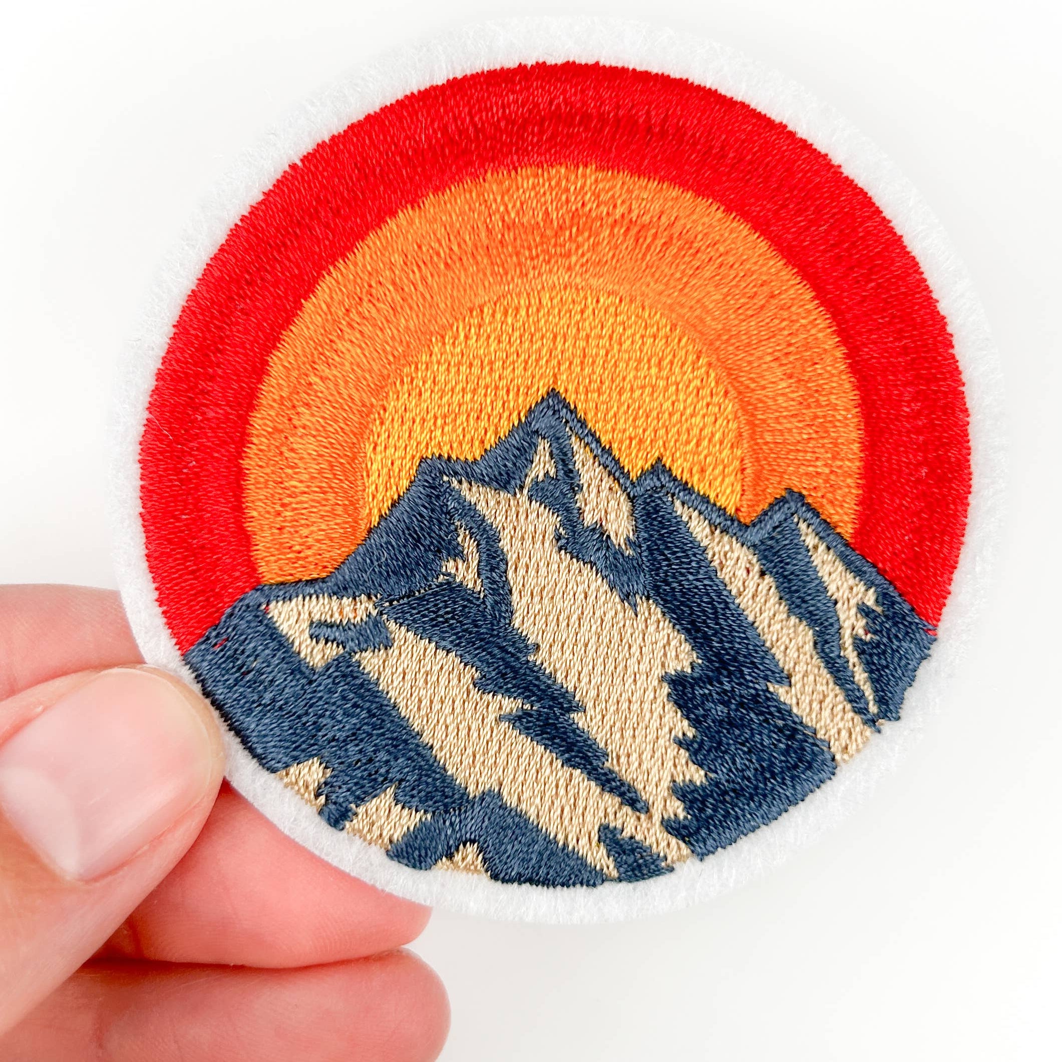 Bring a touch of natural beauty to your gear with our Mountain Sunset Embroidered Iron-On Patch. Order yours today and carry a piece of the great outdoors wherever you go!