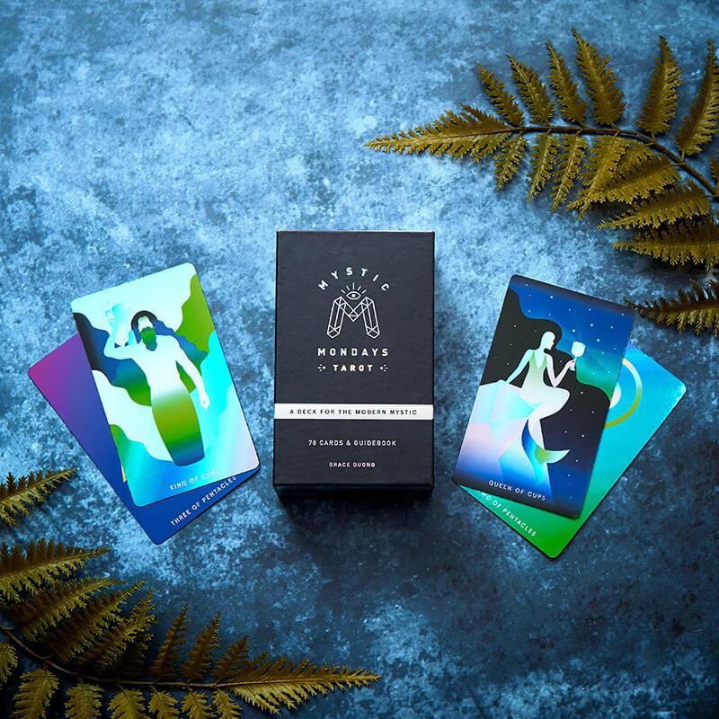 The independently published edition of the Mystic Mondays Tarot by Grace Duong. A bold 78-card deck in a beautifully detailed keepsake box. Cards have a glossy finish. Standard tarot size.