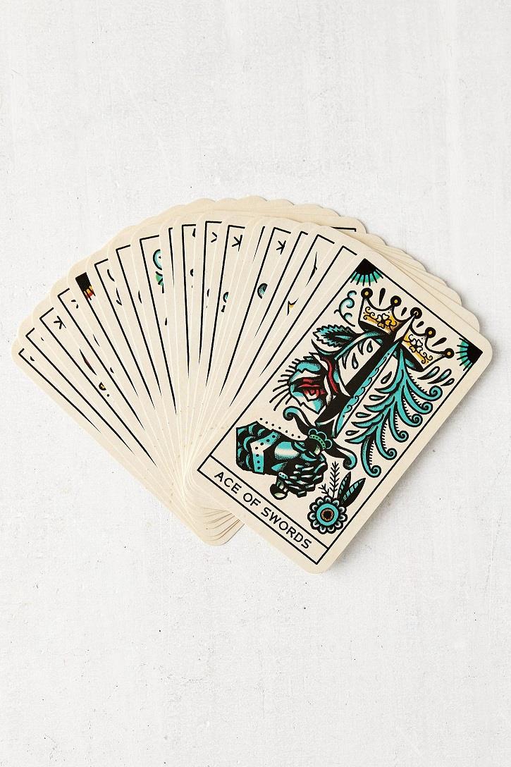 Blending traditional tarot iconography with classic tattoo art, this intricately drawn tarot card deck is illustrated by MEGAMUNDEN. The set includes the 78 cards of the tarot deck together with a 48-page booklet explaining the significance of all the major and minor arcanae written by tarot reader and writer Diana McMahon-Collins. The booklet also contains instructions on how to create your own readings to discover your future. 2018, Laurence King Publishing.
