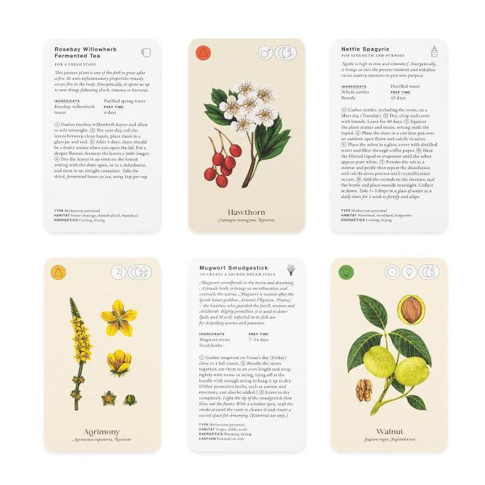 A DECK OF 52 WILD PLANT CARDS with remedies and recipes to soothe and treat the emotional and physical bodyBEAUTIFUL BOTANICAL ILLUSTRATIONS by Raxenne Maniquiz will help you to identify the plants, and enable you to channel their energiesALCHEMY MEETS ASTROLOGY - the ancient practices of alchemy, astrology and wildcrafting combinedUSE THE DECK FOR SELF-EXPLORATION with meditation ideas and oracle spreads to help you connect with nature and yourselfDISCOVER MORE about the practice of alchemy and astrology in the accompanying bookletWild Alchemy Lab is a beautiful gift for lovers of a spiritual way of living, in harmony with the natural world. Each of the 52 cards in the deck features a wild plant, beautifully illustrated, accompanied by its astrological correspondences. The back of the card features a brief description of the plant, some context from history and mythology, and a recipe for a medicinal or culinary use of the plant. The accompanying booklet gives the history of alchemical practices and offers information about when and where to forage, some tips for preparing the plants and some other ways you can use the cards.
