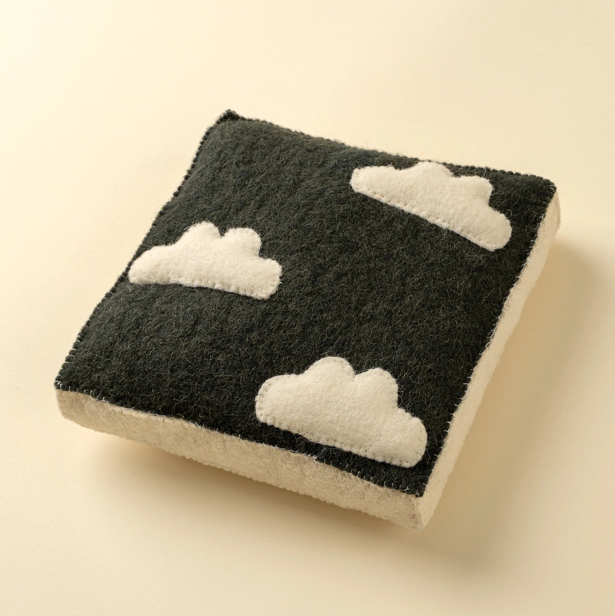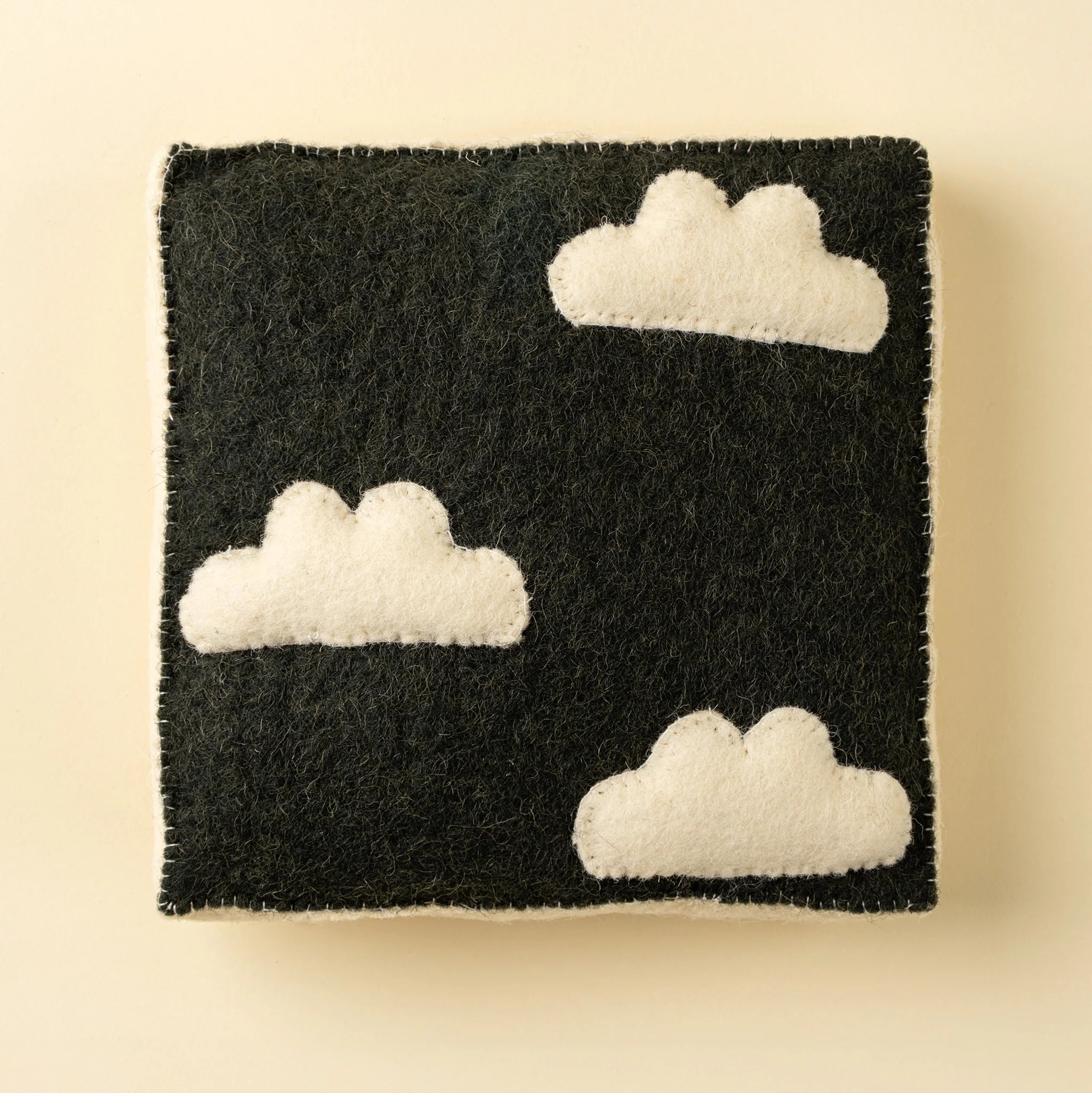 Bring a touch of whimsy to your little one’s space with the Cloudy Day Felt Wall Plaque. Lovingly handmade in India, this wool and polyester wall accent features three softly stitched cream clouds on a dark background. Its playful yet minimalist design adds dimension to your gallery wall or makes a charming standalone statement. Perfect for those who value handcrafted goods, ethical sourcing, and imaginative spaces.