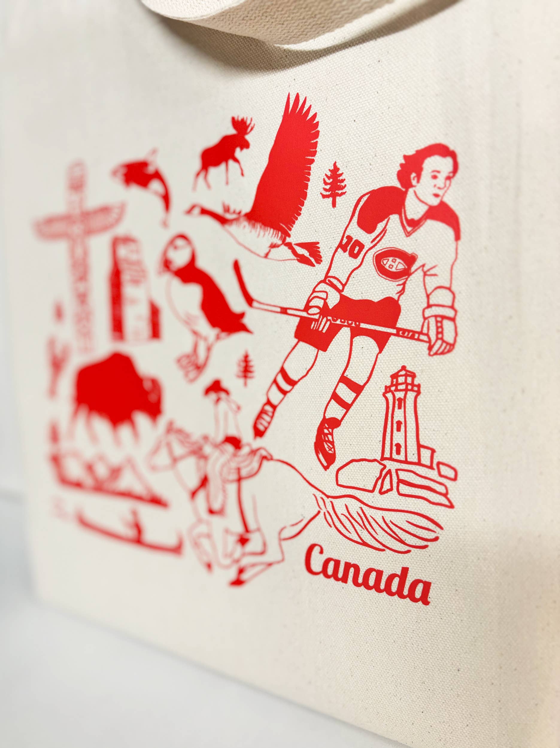 12 oz Sturdy Natural Cotton Canvas at 14x16” with 10" high webbed cotton handles that are 10” high. This is a Direct To Fabric (DTF) Printed Tote with Eco-Friendly Inks Heat Pressed by Paula in her Toronto studio! Original Print is 10.5” wide. Slight variation in print and position is expected.