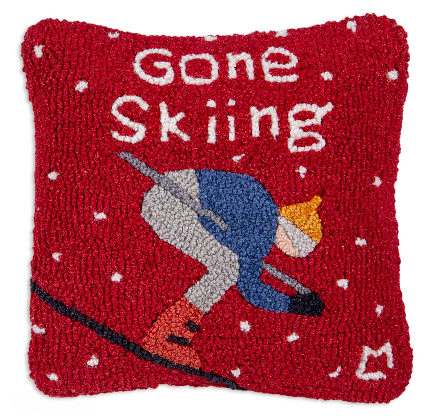 Gone Skiing 14"x14" Hooked Wool Pillow