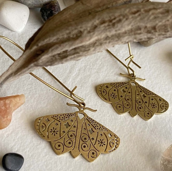 These little moths have the cutest ornate wings, making this drop earring style is so nice to wear with a beautiful patterned top or anything really!